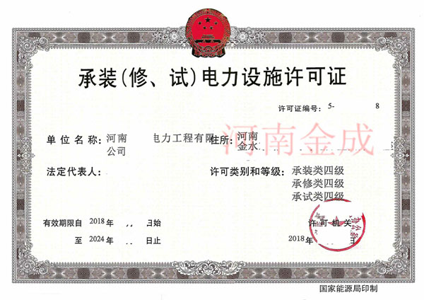 • 承裝(修、試)電力設施許可證